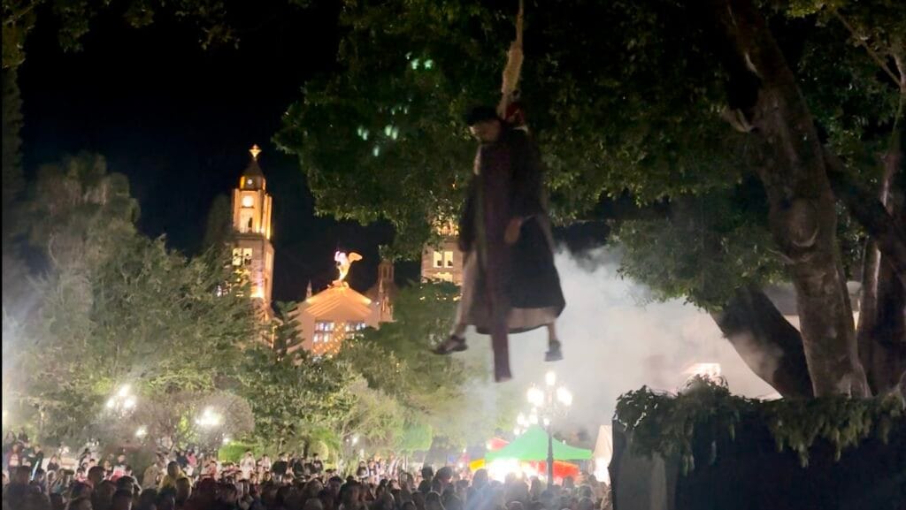 Poco después de las 11 de la mañana, los actores del patronato “Atenas del Sur”, se concentraron en la explanada de la plaza cívica “Lic. Adolfo López Mateos” para escenificar esta representación.