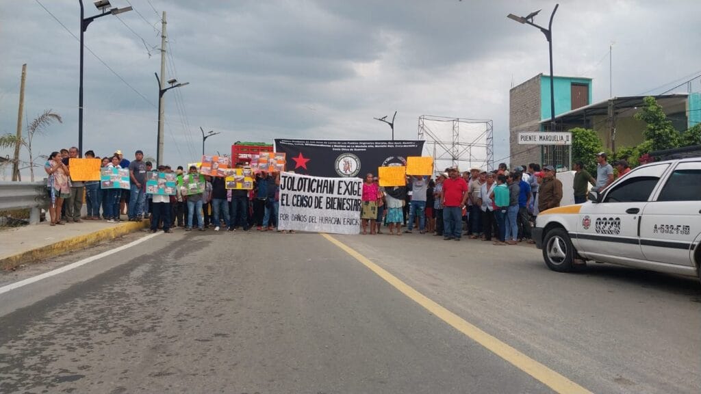 Habitantes de comunidades afectadas por el huracán Erick iniciaron un bloqueo indefinido sobre la carretera federal Acapulco-Pinotepa Nacional, como parte de una jornada de lucha para exigir atención urgente a los graves daños sufridos tras el paso del fenómeno natural, el pasado 19 de junio.