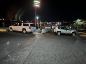 Se informó que, en la camioneta de color blanco, se encontró un arma de fuego, envoltorios con droga y bebidas alcohólicas.